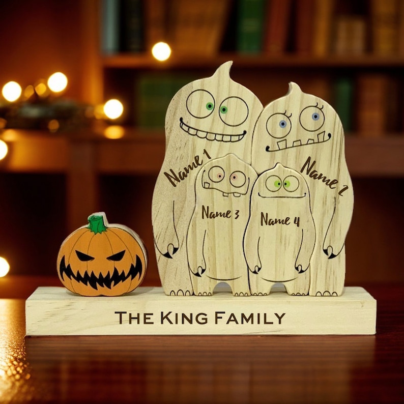 Personalized Wooden Ghost Family Puzzle Memorial Halloween Gift