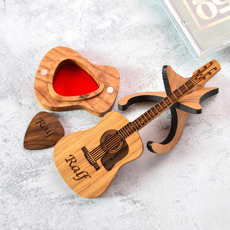 Personalized Wooden Guitar Case With Pick Beautiful Gift For Music Lovers