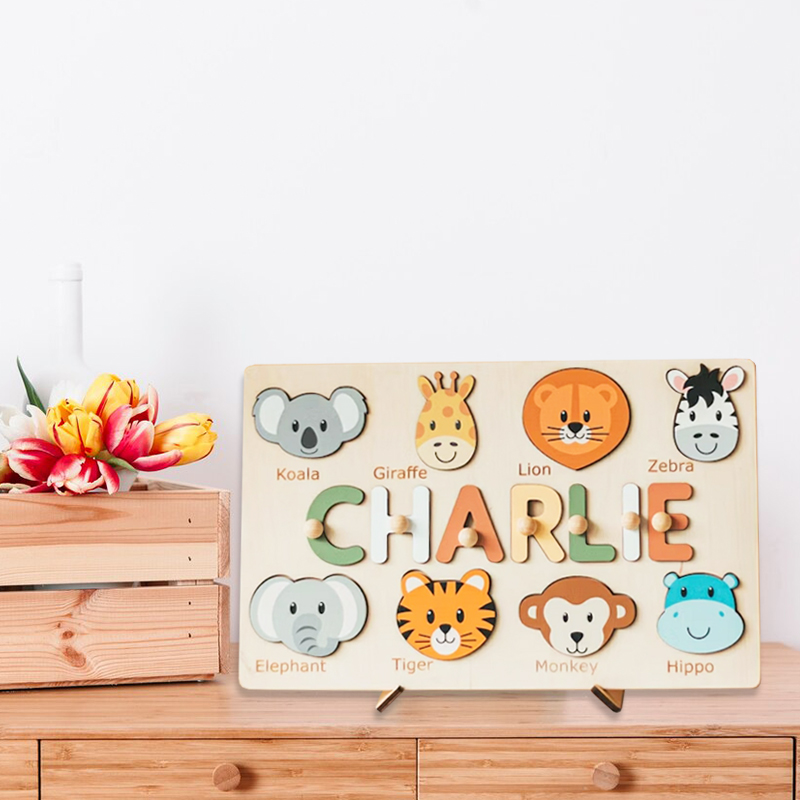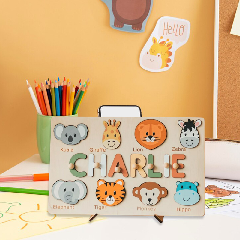 Personalized Wooden Name Puzzle Toy Gift Customized Cute Animal Head Christmas Gift for Kids