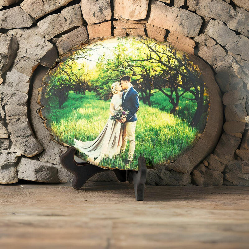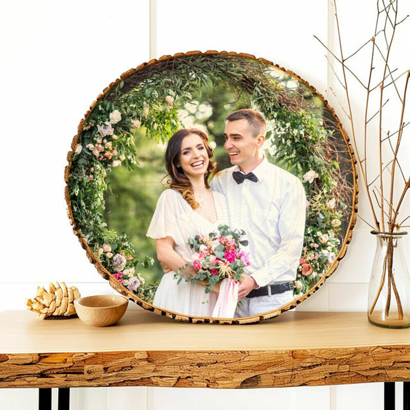 Our wood photos are not only great to give as wedding gifts, but are perfect for any other occasion, or simply to add a little rustic flair into your own home decor! Have your own custom photo printed directly onto round basswood, with no margins or gaps. The natural wood shows through the photo for a beautiful, rustic, and "worn" look.