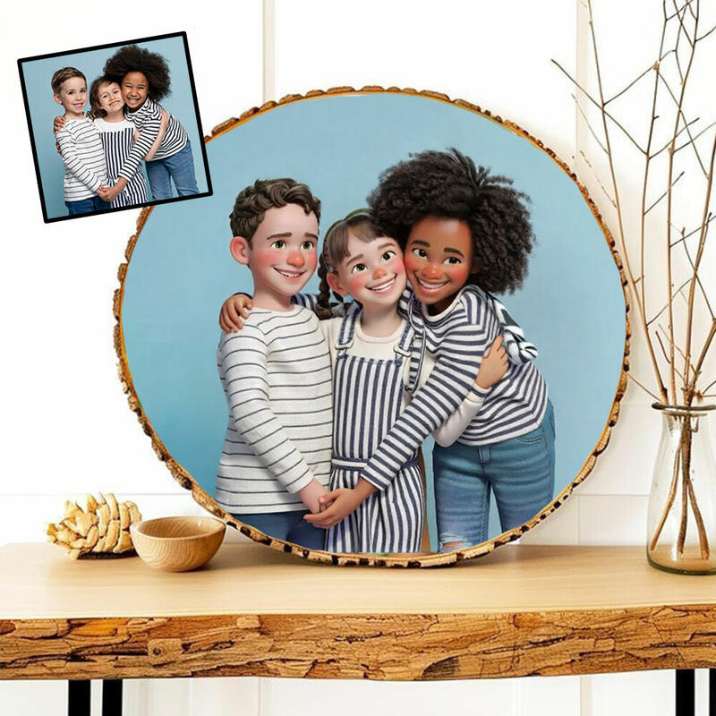 Personalized Wooden Photo Frame Cartoon Style Kids Photos Birthday Gift for Mom