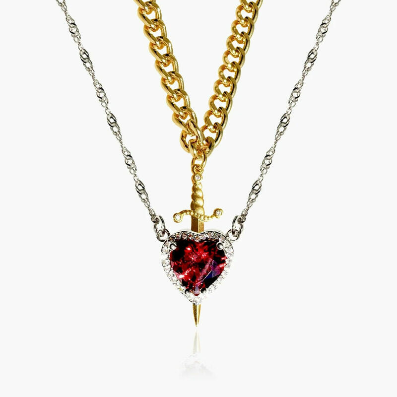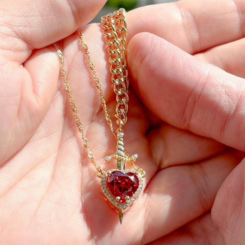 Red Crystal Love Dagger Necklace Set Sweet Valentine's Day Gift For Couples