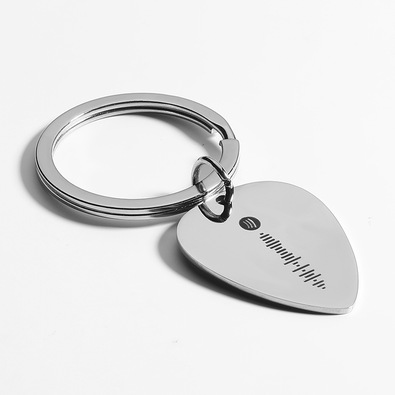 Custom Spotify Code Keychain.You can choose any song,it can generate a unique Spotify code.Please note that the keychain itself does not emit music.You have to scan the code on the Spotify app,after scanning the code on Spotify,your song will start playing immediately.I believe this is the most romantic gift,play the most beautiful music for your love.