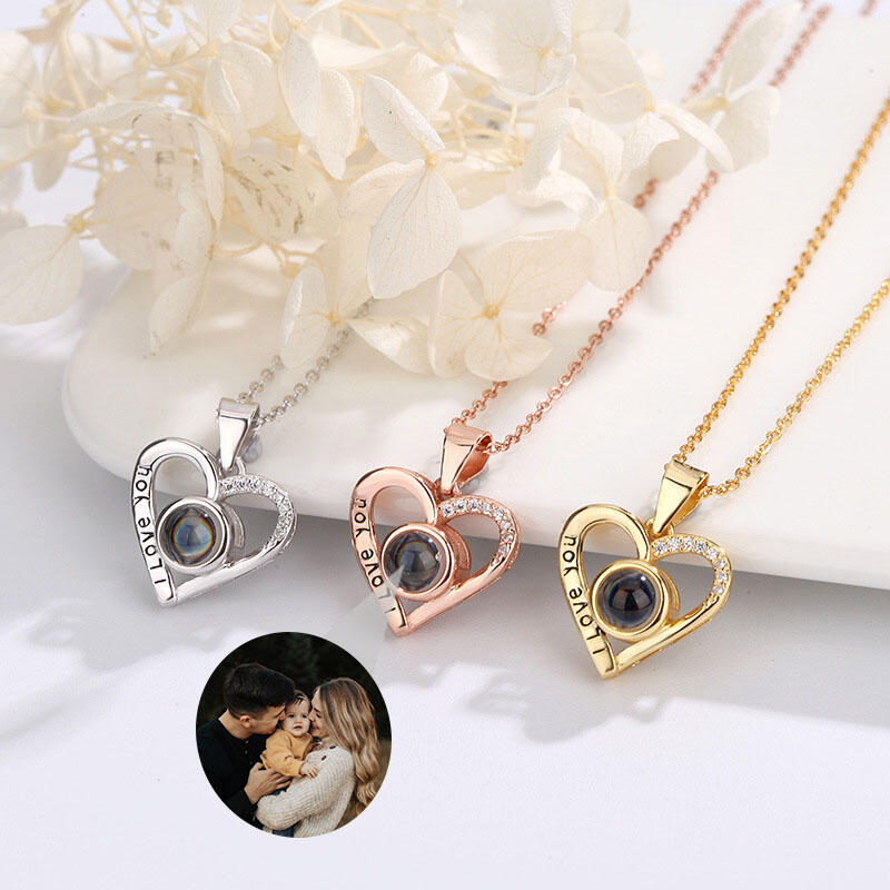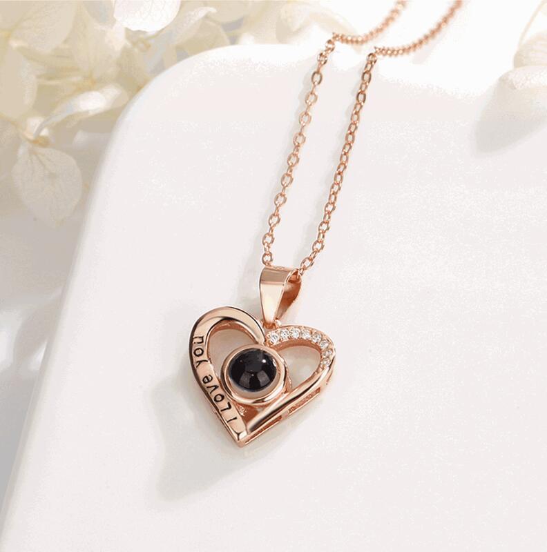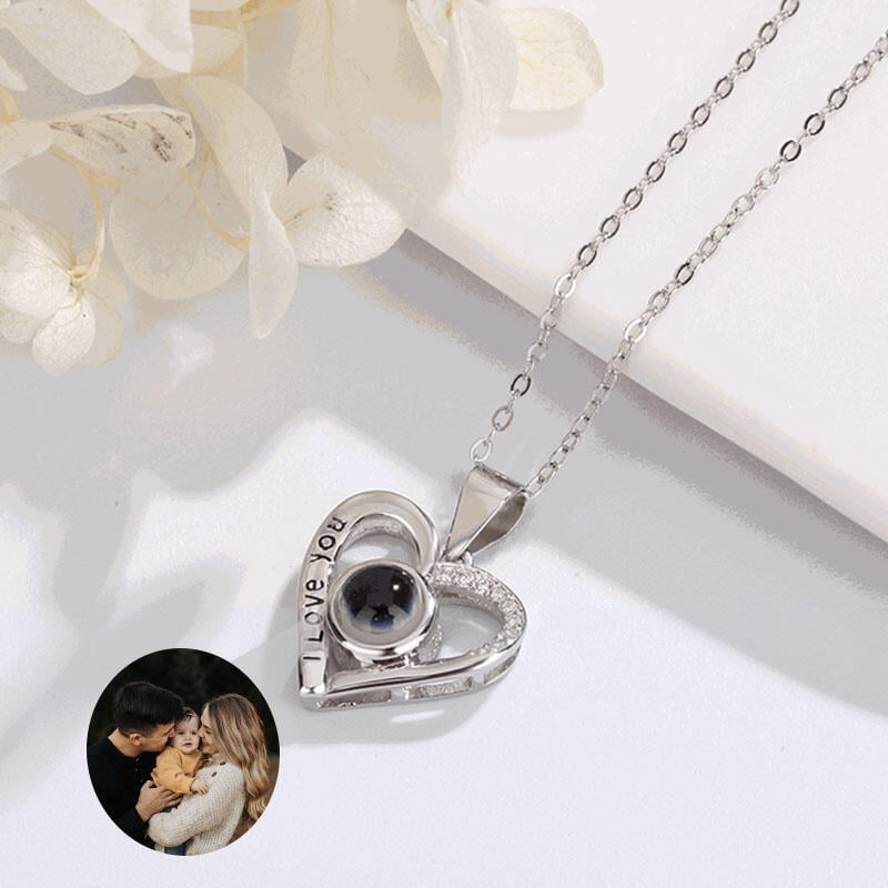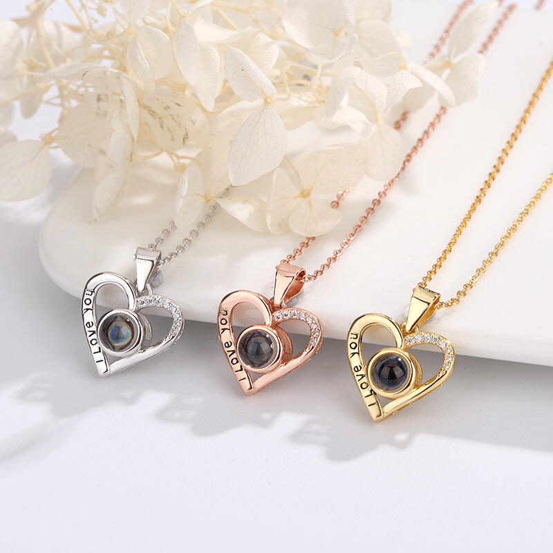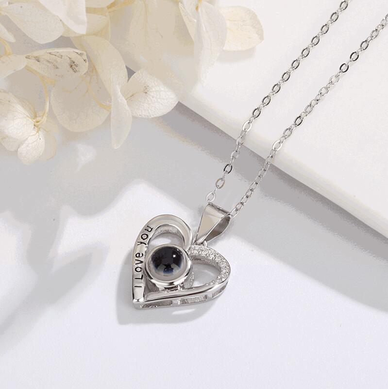Sterling Silver Personalized Heart I Love You Photo Projection Diamond Necklace