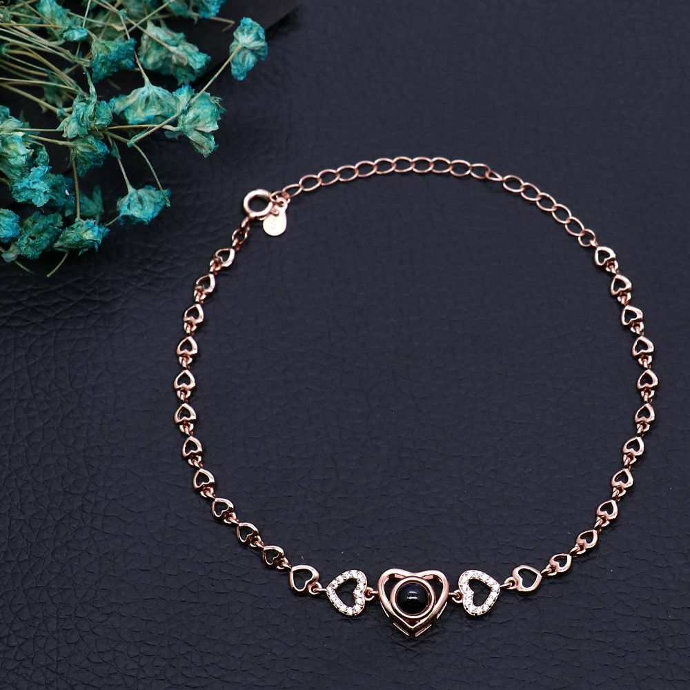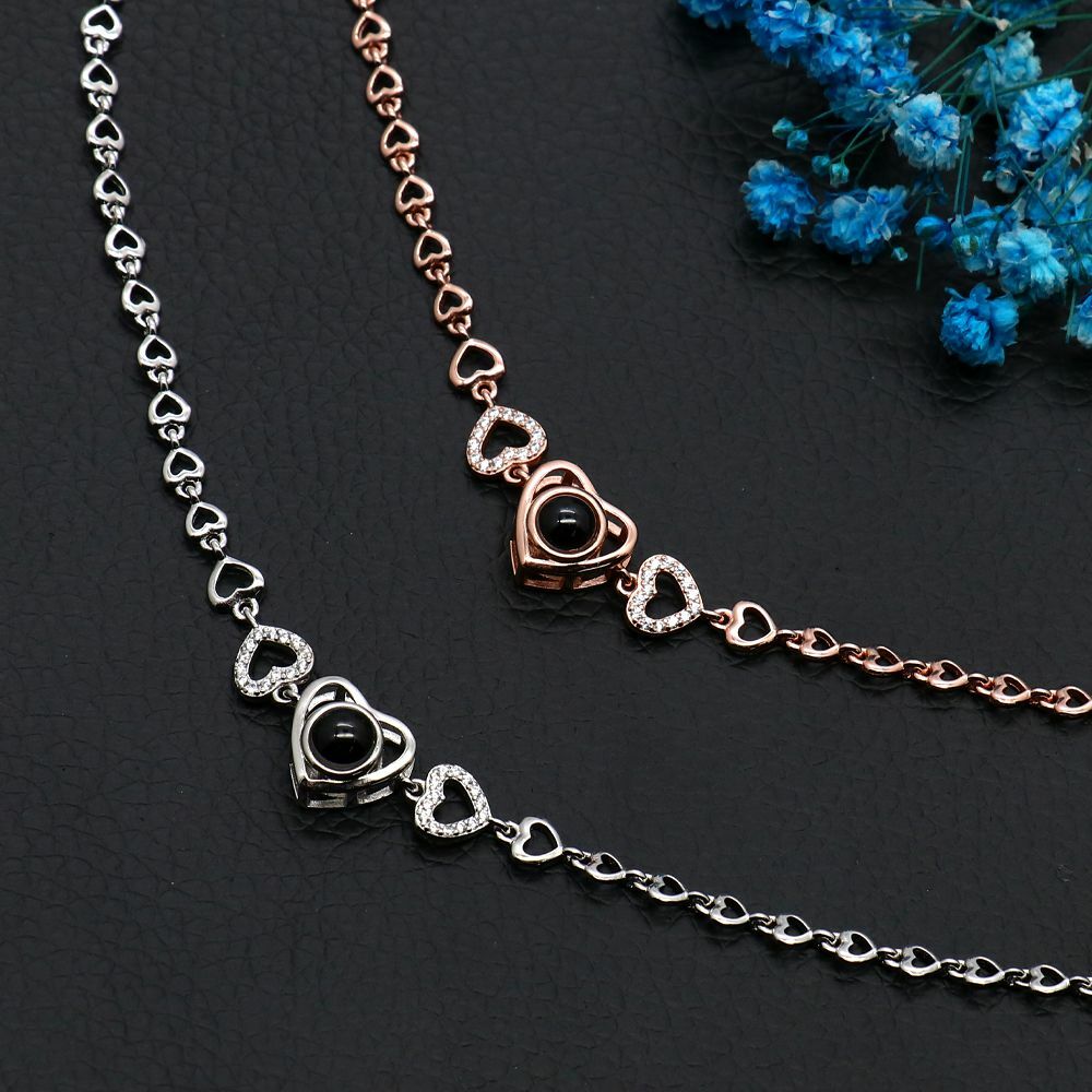 Sterling Silver Personalized Heart Photo Projection Bracelet Gift for Her