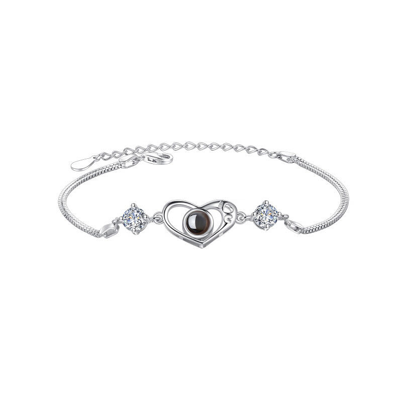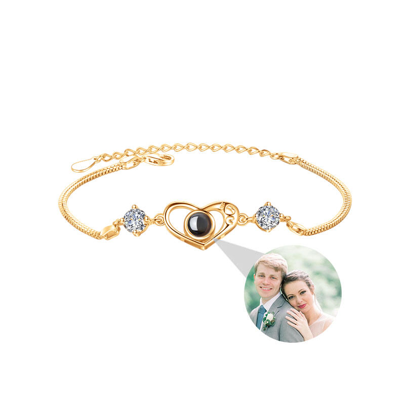 Sterling Silver Personalized Heart Photo Projection Bracelet with Diamonds for Couple