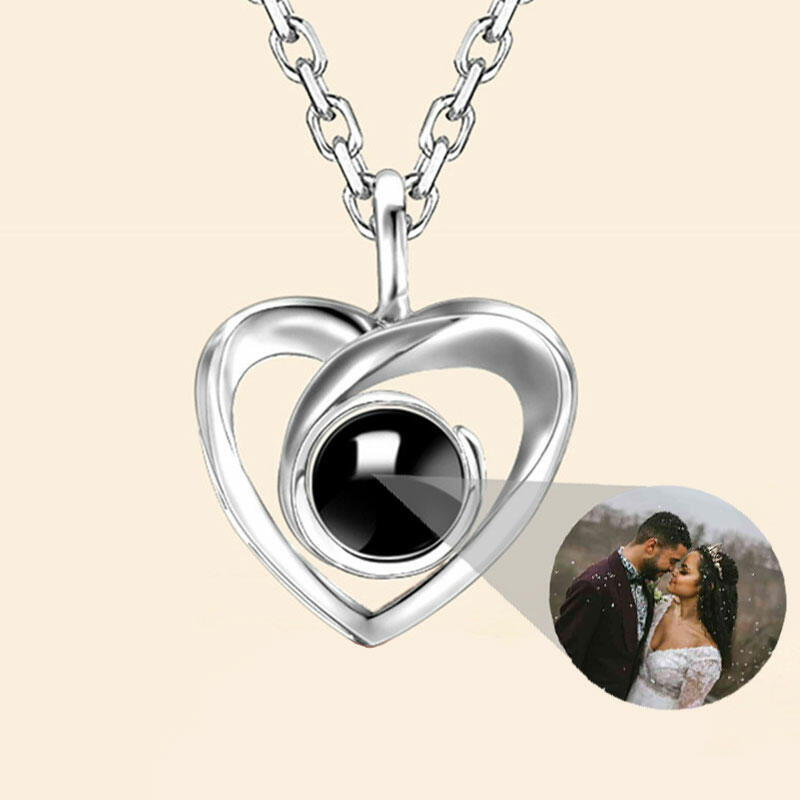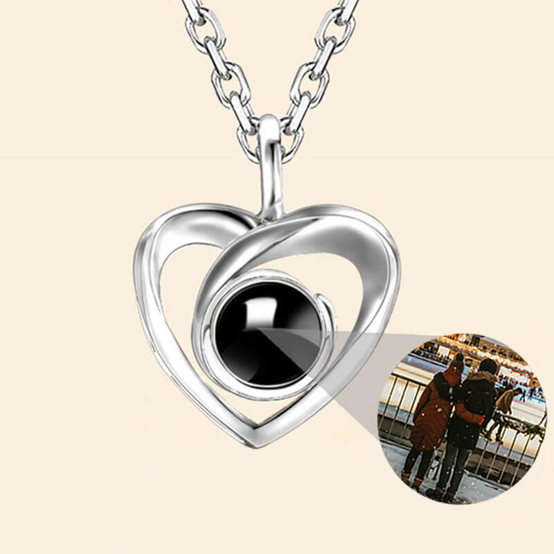 Sterling Silver Personalized Photo Projection Necklace - Love Heart