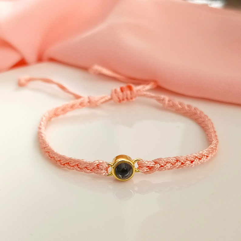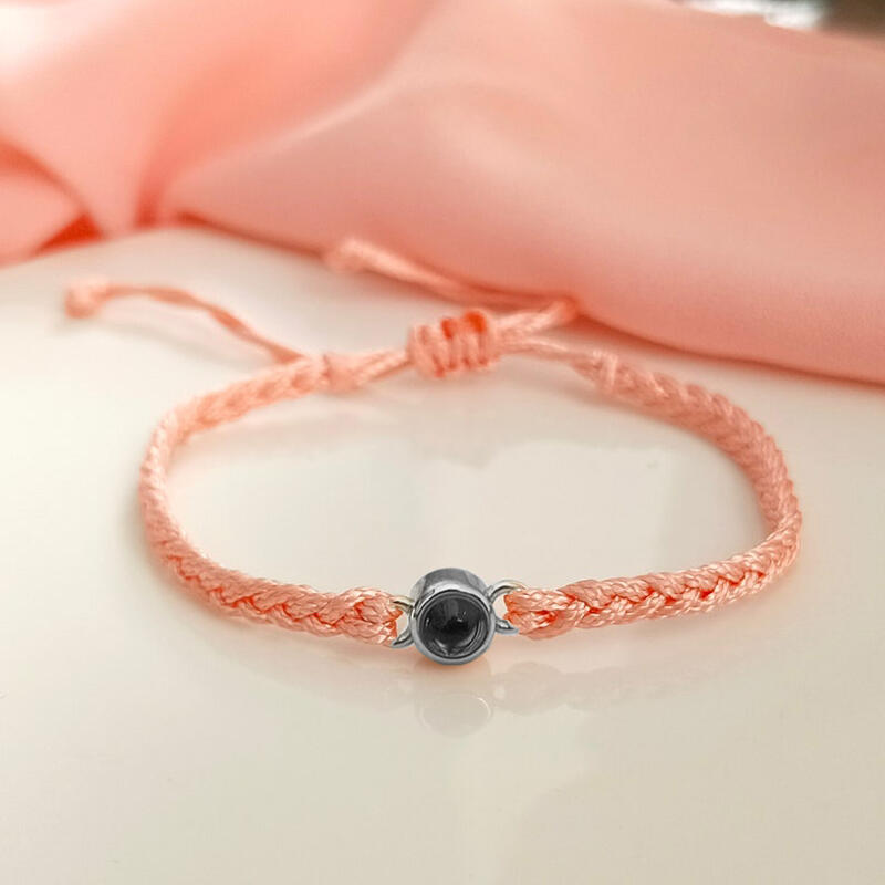 Sterling Silver Personalized Pink Rope Picture Projection Bracelet Sincere Gift