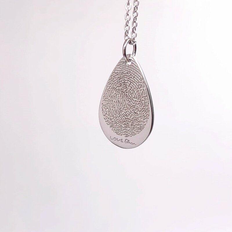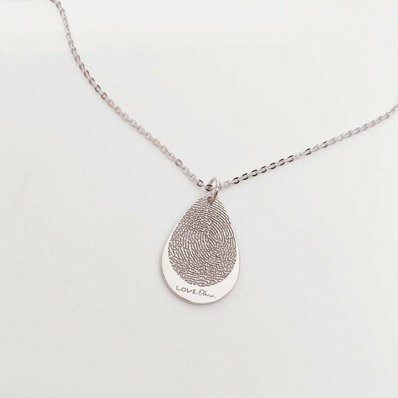 Teardrop Personalised Fingerprint Necklace with Handwriting