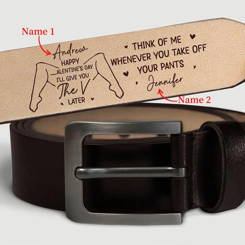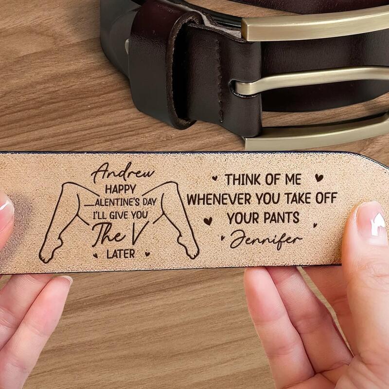 "We Fit Without Trying" Custom Leather Belt with Engraved Name Anniversary Gift for Husband