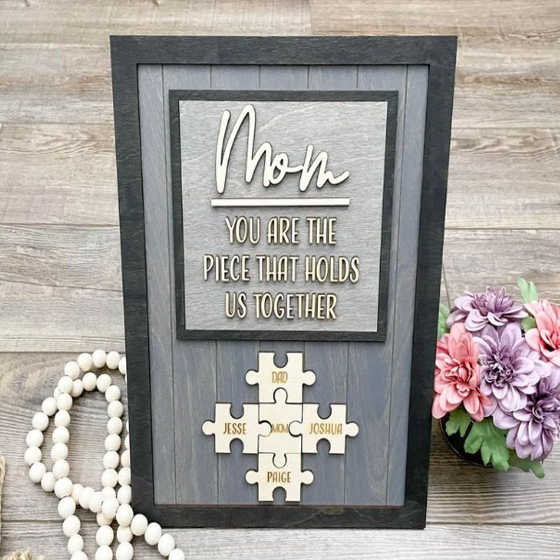 An exquisite personalized gift for the most special lady in our lives ~ Mom! Our mother is the one who keeps us together. The puzzle signature is the perfect gift for anniversary, birthday, mother's day, father's day or any day! It can be used as a souvenir as well as a house decoration, you deserve it.