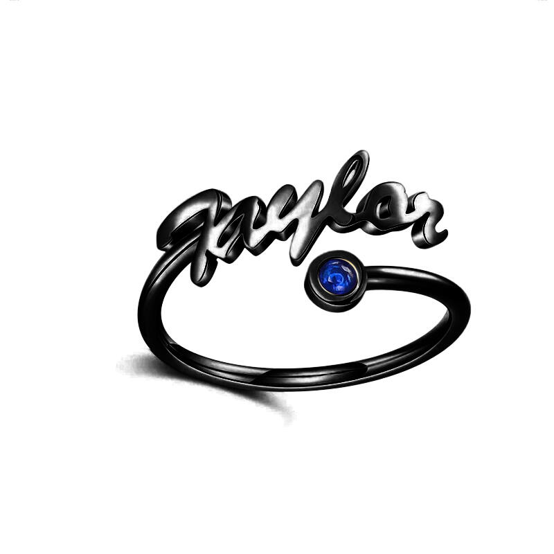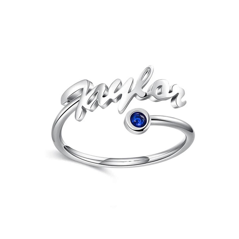Our Personalized Birthstone Name Ring turns heads everywhere it goes, thanks to gorgeous style details. Customized with the name or word of your choice, it is accented with a colorful birthstone. There are multiple colors available for you to choose. And the open cuff design is convenient for you to adjust size.