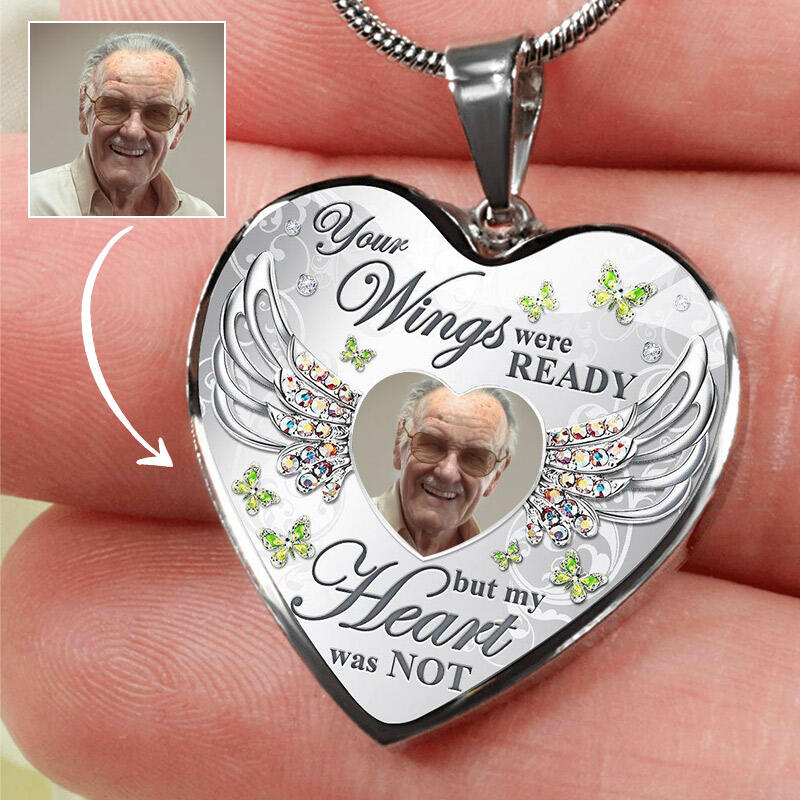 "Your Wings were ready" Personalized Memorial Photo Necklace